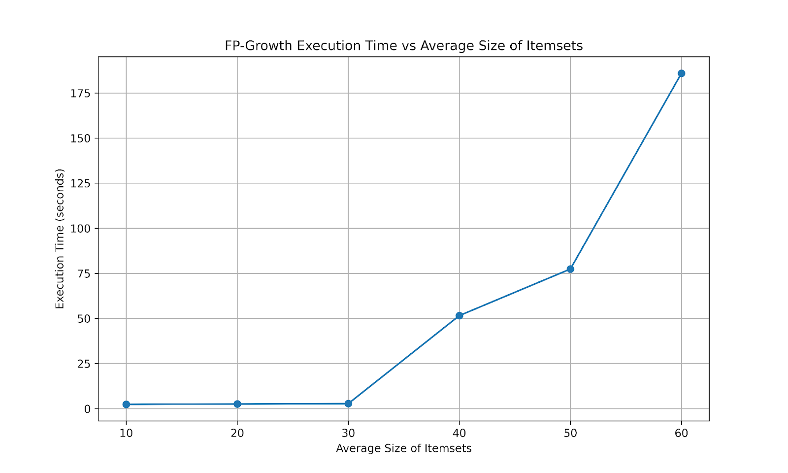 The chart above shows how important the size of itemsets is. It was impossible to run it on my laptop after an average size of 60! This can be traced back to the algorithm where it creates FP-Tree and searches them for patterns recursively. This step can grow exponentially when the size of the itemset is increased. This was exactly what went wrong with those "problematic" subsets in FrieslandCampina! The problematic ones had signficantly higher median size of itemsets that led to infinite computaion/memory needs.
