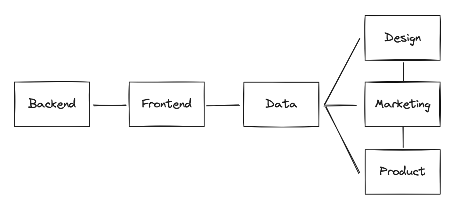 If this setup seems fine at first glance, think twice: every segment is not just a connection, but also a source of friction. Communication across teams takes time, creates opportunities for misunderstandings, and slows progress down.